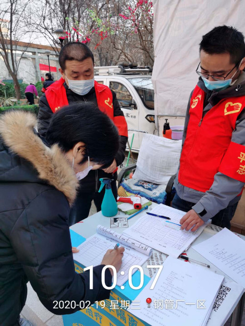 2月19日,停車公司組織16名志愿者,分兩組前往物業公司管轄的鋼管廠小區開展疫情防控志愿服務活動。