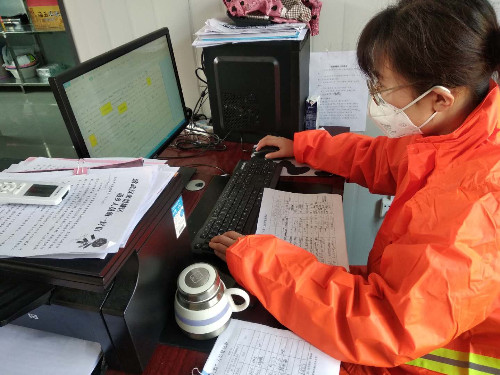 志愿者將小區業主排查情況統一錄入電腦